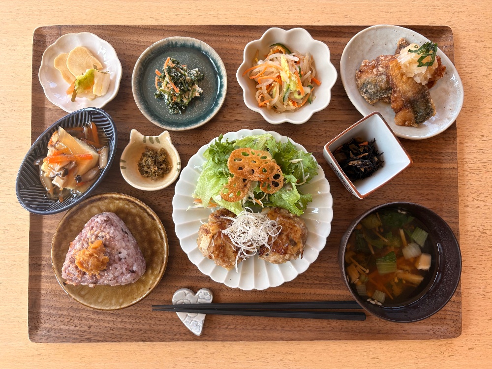 日替わりメニューの中から、お好きなメインと、ご飯が選べます。ご飯は、白米、五穀米、寝かせ玄米、菜飯、焼きおにぎりの中からお選び下さい。